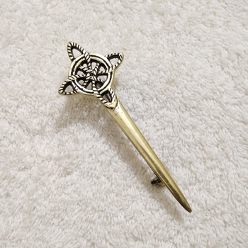 Falda escocesa espada forma perno de latón Highland Bagpiper escocés Piper Kilt Pin TT-7137 antiguo Kilt Pin