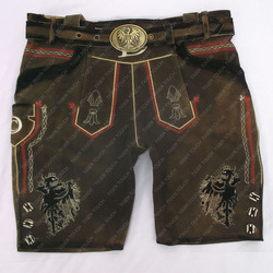 Bavarian Oktoberfest erkek gerçek deri kıyafet kahverengi kısa nakış su geçirmez nefes hafif düğme Fly kapatma modeli